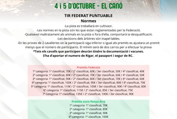 Nous dies per al tiro dissabte 25 i diumenge 26 d´Octubre. S´apuntarà els dies 20 i 21 al telf de Jesús!!